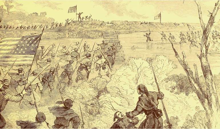 Okręty unijne ostrzeliwały wrogie pozycje. Żołnierze szybko lądowali.