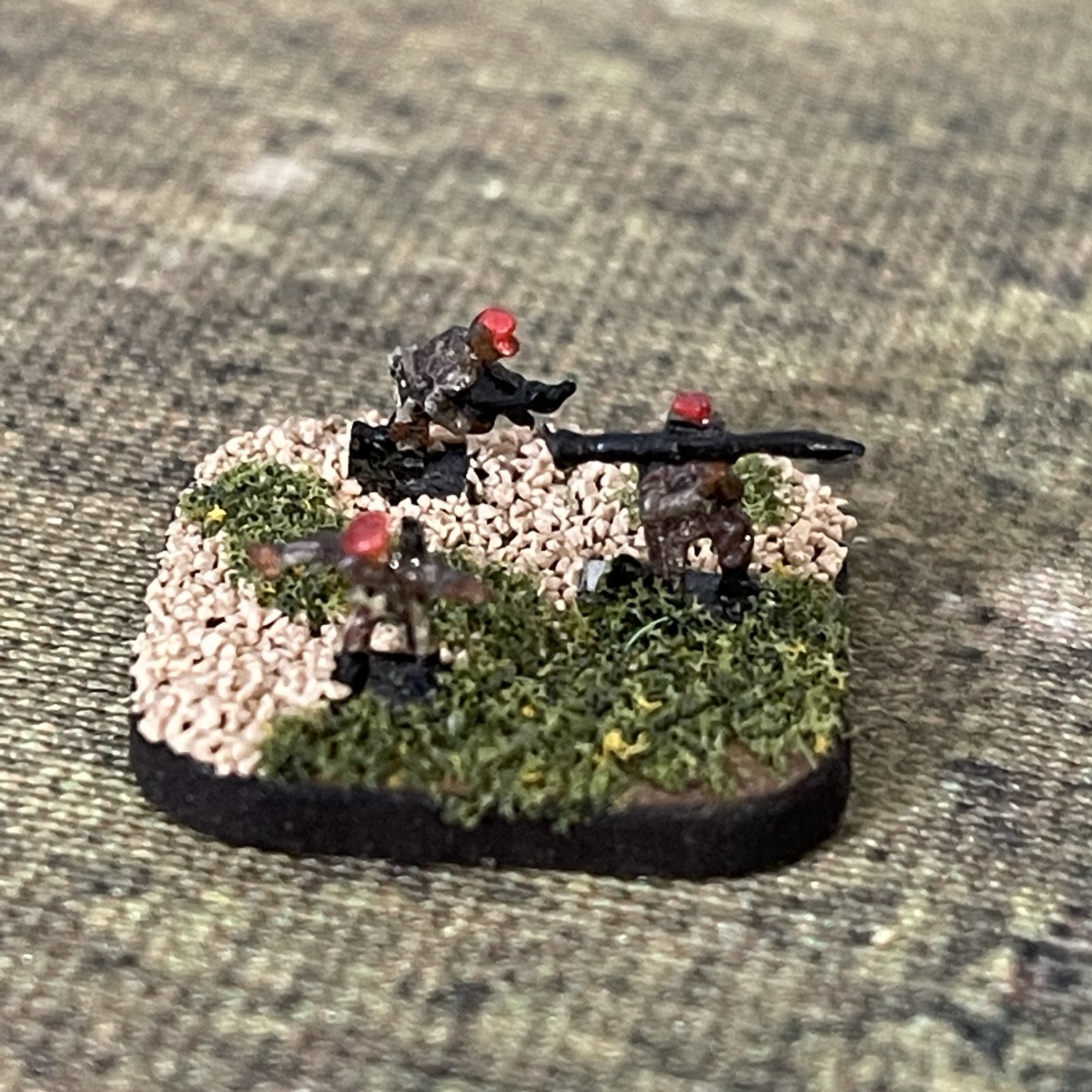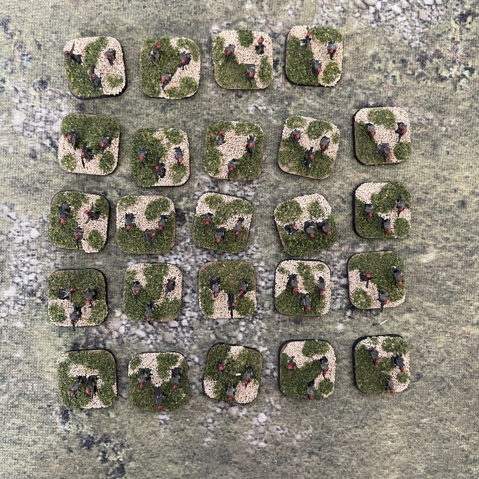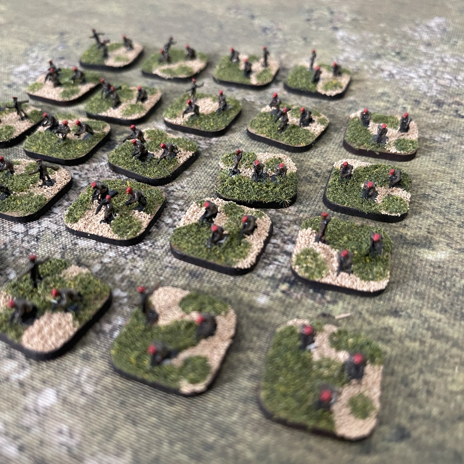 Przedstawiamy 23 podstawki z figurkami żołnierzy afrykańskiej armii. Zestaw idealny do gier bitewnych. Pięknie szczegółowo pomalowane. Skala 6mm.
