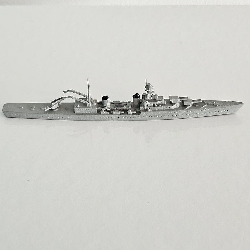 Model krążownika typu La Galissonnière w skali 1:1250, wykonany z metalu i pomalowany. Model ten jest przeznaczony do gier wojennych.