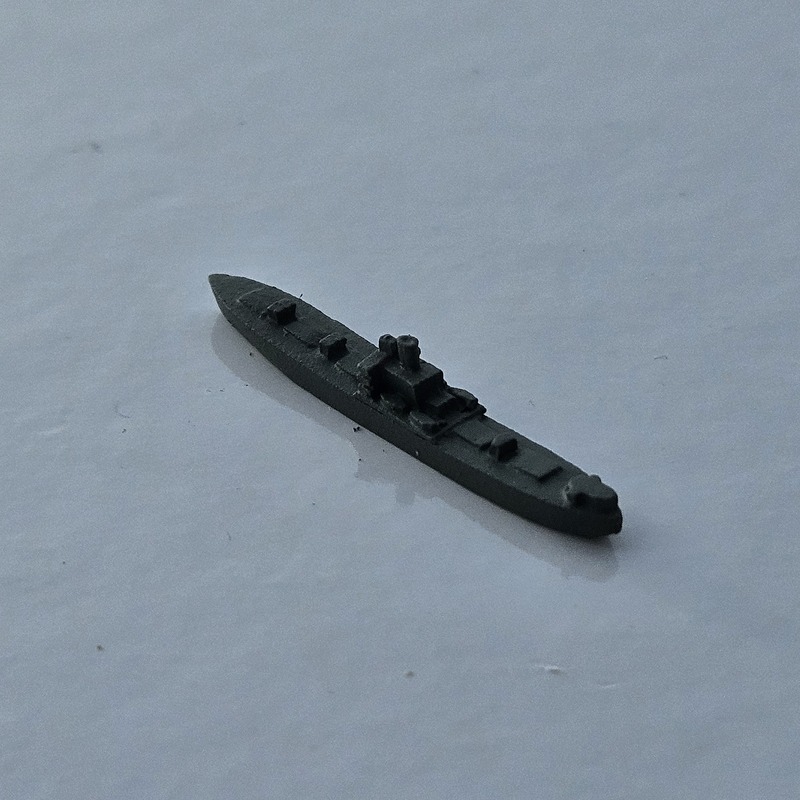 Metalowy model Liberty Ship w skali 1/3000, wykonany z miękkiego metalu i pomalowany szarym podkładem. Ten statek transportowy, zaprojektowany do masowej produkcji w czasie II wojny światowej, był kluczowy dla aliantów w dostarczaniu zaopatrzenia. Model wiernie odwzorowuje konstrukcję historycznego Liberty Ship i jest przeznaczony do gier bitewnych w realiach II wojny światowej.