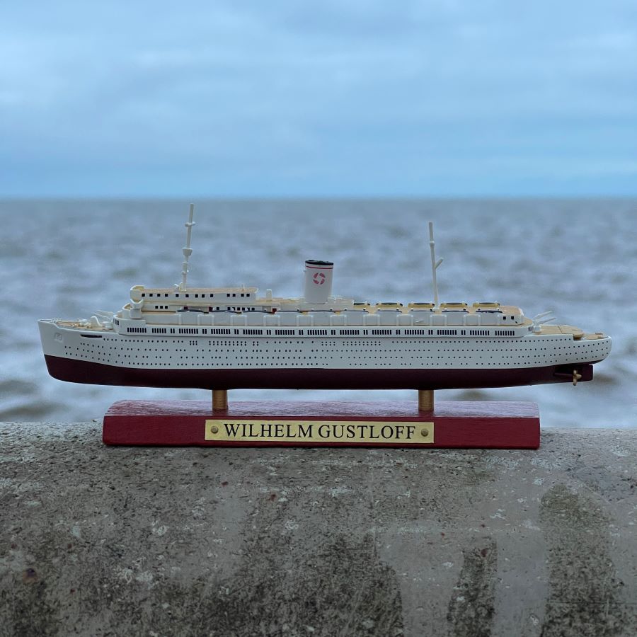 Notka historyczna: MS Wilhelm Gustloff był niemieckim statkiem pasażerskim, który w czasie wojny został włączony do Kriegsmarine, przekształcony kolejno w okręt szpitalny i pływające koszary dla personelu dywizjonu szkolnego U-Bootwaffe. Statek został przydzielony do Operacji Hannibal, mającej na celu ewakuację personelu wojskowego oraz cywilów z Prus Wschodnich, aby uniknąć ich przechwycenia przez nadchodzącą Armię Sowiecką. Ostatni rejs Wilhelma Gustloffa odbył się w styczniu 1945 roku, gdy przewoził cywilów, personel wojskowy i techników z Kurlandii, Prus Wschodnich oraz Gdańska i Zachodnich Prus z Gdyni do Kilonii. Podczas tej podróży został zatopiony przez radziecki okręt podwodny, co spowodowało największą pojedynczą stratę życia na morzu – szacuje się, że zginęło około 9 400 osób.